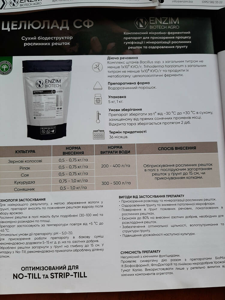 Комплексний мікробіологічно-ферментний деструктор для прискорення процесу гуміфікації і мінералізації рослинних решток та оздоровлення ґрунту.