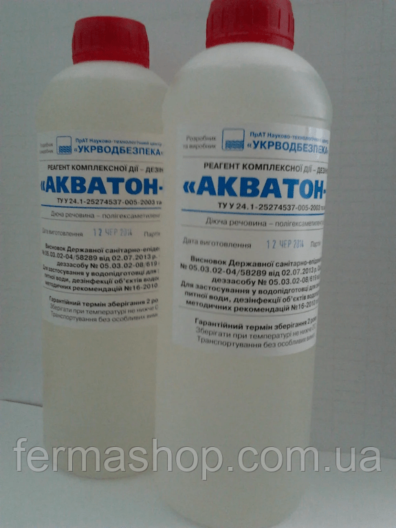 «Акватон-10» реагент комплексного действия (прекрасное дезинфицирующее средство) предназначен для применения в водоподготовке для обеззараживания, доочистки питьевой воды в централизованном, децентрализованном и автономном водоснабжении, в локальных сетях, в бассейнах, для дезинфекции технологического оборудования, скважин, колодцев, фильтрующих загрузок, емкостей, др.объектов, задействованных в водоподготовке. “Акватон – 10” – это реагент комплексного действия, активным веществом (ДВ) которого является биоцидный гуанидиновый высокомолекулярный полимер.