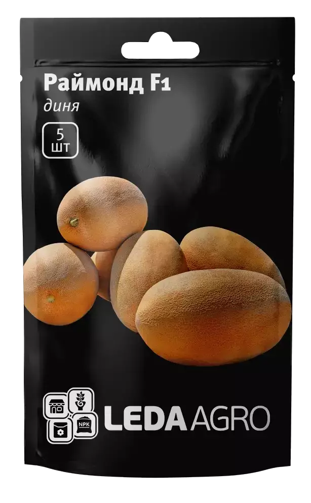 Сегментація – середньостиглий гібрид дині Ананасного типу. Вегетаційний період – 70-75 днів від моменту висадки розсади. Призначення – Використовується для свіжого ринку. Характеристика плодів – Плоди овальної форми з чітко вираженою сіткою і маленькою насіннєвою камерою. М’якоть кремово-жовтого кольору, без прозелені, дуже солодка. Середня маса плоду 3,5-5,5 кг. Вміст цукрів 12-13%. Особливості рослини – Дуже потужний середньостиглий гібрид з розвиненим листовим апаратом. Позитивно реагує на високі температури повітря – чим тепліше, тим краще. Прекрасне зав’язування плодів навіть за стресових умов. Стійкість – Гібрид стійкий до фузаріозного в’янення та толерантний до борошнистої роси. Конкурентні переваги – Раймонд F1 забезпечує надзвичайно високий вихід товарної продукції. Добре транспортується та зберігається. Рекомендації – Рекомендована густота – 6-8 тис./га.