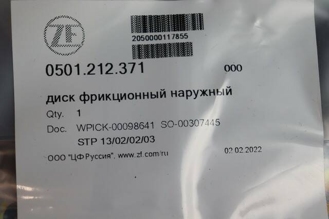 Диск фрикционный ZF 0501.212.371