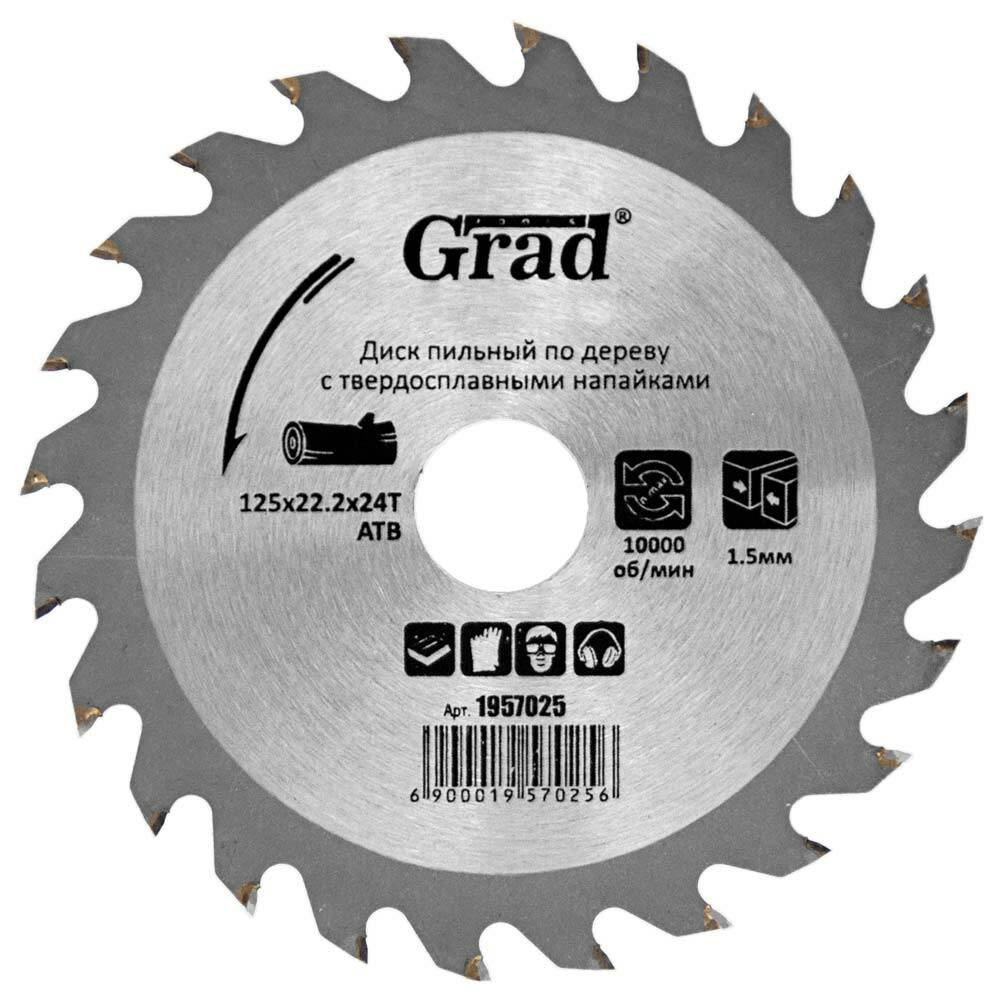 Диск пиляльний по дереву з твердосплавними напайками Ø125×22.2×24Т, 10000об/хв GRAD (1957025)