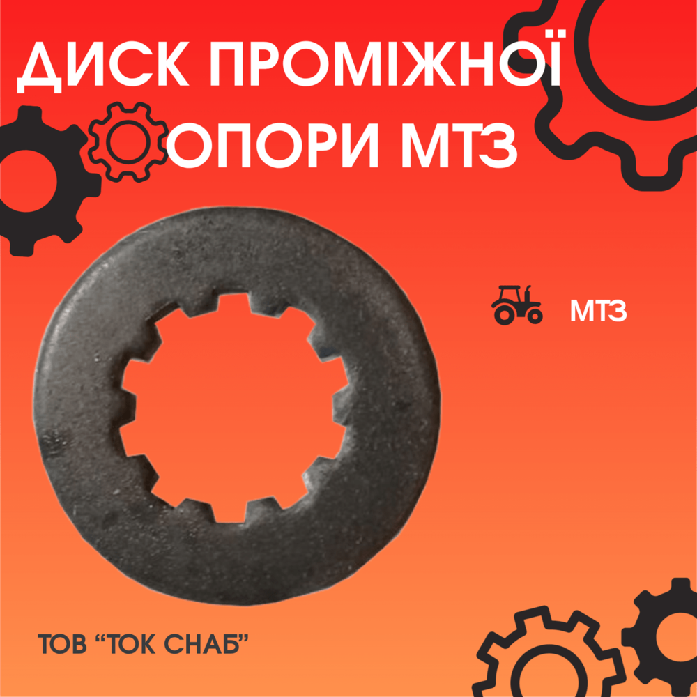 Ведучий диск проміжної опори з 10 внутрішніми шліцами — це комплектуюча для трансмісії трактора МТЗ-82, призначена для передачі крутного моменту між валами та з’єднання вузлів проміжної опори. Виготовлений із термообробленої конструкційної сталі, забезпечує надійне спряження зі шліцевим валом та збільшений ресурс в польових умовах.