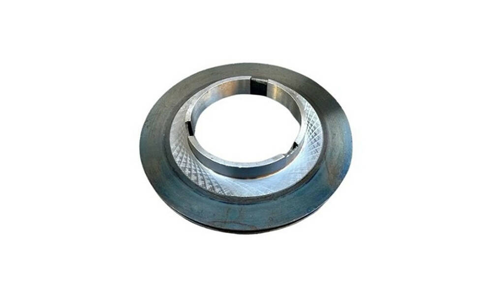 Диск виготовлений із високоміцної сталі, яка проходить термообробку для підвищення зносостійкості. Це гарантує довготривалу експлуатацію навіть у важких умовах роботи з високими навантаженнями.