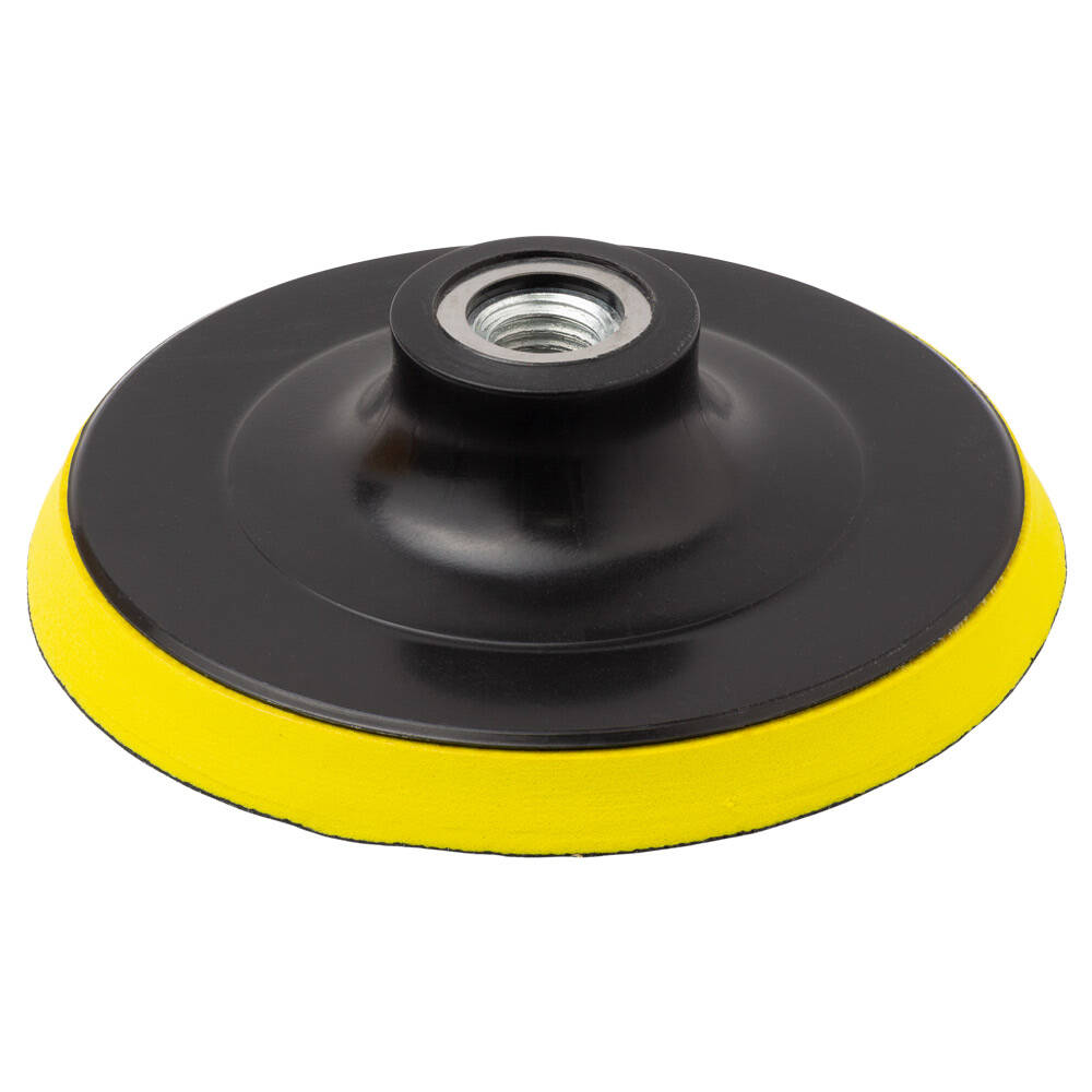 М’яка підкладка застосовується для шліфування опуклих частин при фінальній шліфовці. Вона допомагає зменшити тиск на поверхню і не дає абразиву врізатися глибоко, пом’якшує дію шліфувального круга. Таким чином круг облягає форму деталі і прибирає тільки подряпини, а не змінює форму поверхні, навіть коли підошва знаходиться під кутом. Призначений для кріплення абразивних кругів на «липучці» з ворсовою основою, а також полірувальних насадок при проведенні шліфувальних і полірувальних робіт за допомогою електродрилі та кутової шліфувальної машинки. Перехідник «електродриль-КШМ», виготовлений з вуглецевої сталі, дозволяє використовувати диски (опорні тарілки), призначені для КШМ, з електродрилем.