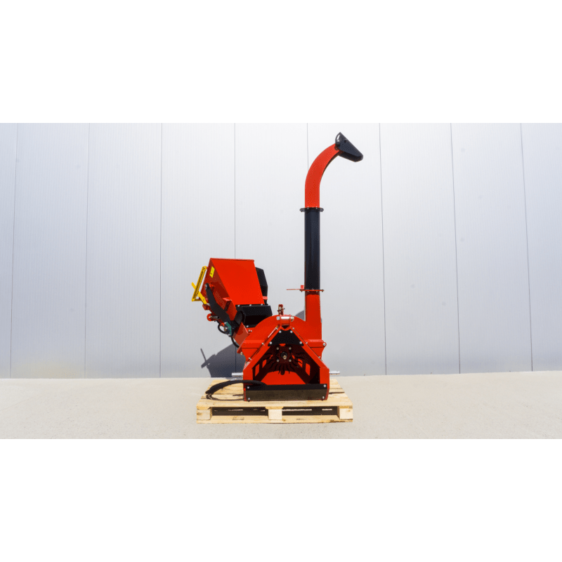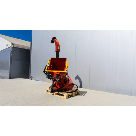 Подрібнювач оснащений кожухами, які забезпечують безпечну роботу. Випускний патрубок можна повертати на 360°, щоб направити потік стружки в потрібному напрямку. Подрібнювач характеризується високою продуктивністю і високим комфортом роботи.