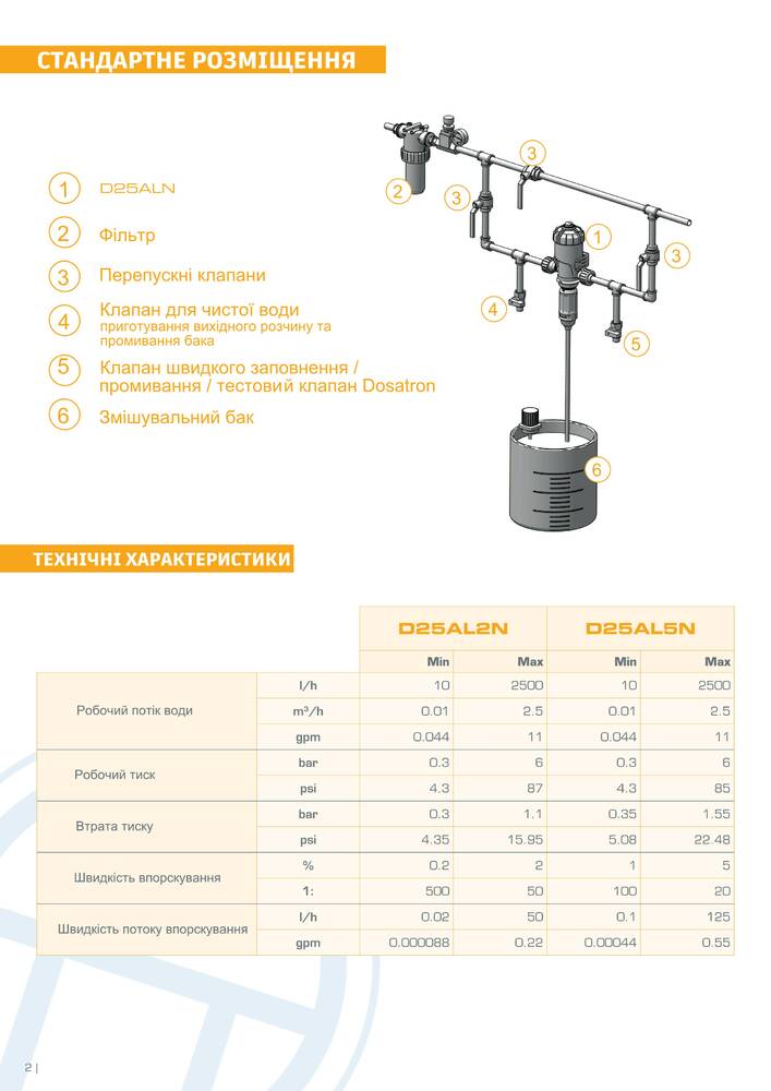 пропускна здатність 10 – 2500 л/год (0,01 – 2,5 м³/год)