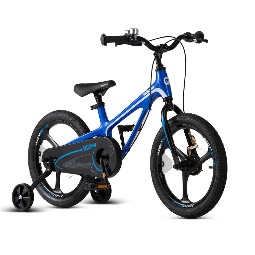 Опис Дитячий велосипед RoyalBaby MOON  25.18-08 алюміній синій Дитячий велосипед   MOON  PRO EDITION  – зручна та красива новинка від RoyalBaby. Рама велосипеда виконана з якісної сталі, відрізняється стильним, яскравим дизайном та комфортом в експлуатації. Колеса 18" розміру. Модель підходить для навчання та практики дітей їзді, тому, що оснащена додатковими маленькими знімними колесами. На цьому велосипеді дитина весело та безпечно зможе здійснювати свої перші поїздки.