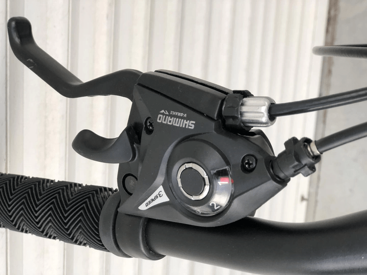 Дискові механічні гальма легко обслуговувати і налаштовувати. Система перемикання передач із точковою фіксацією кожної швидкості, 21 швидкість (3х7).