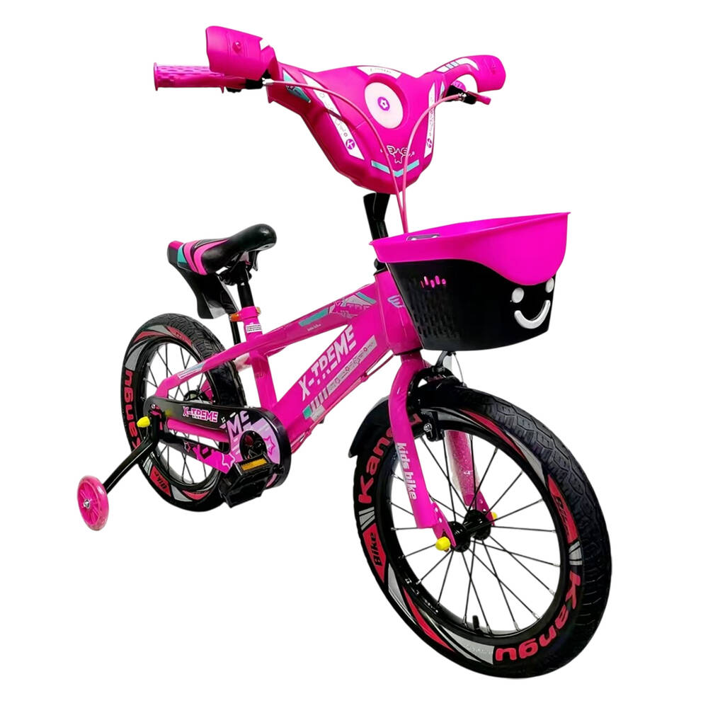 Опис Дитячий велосипед X-Treme KANGU 25.16-01, к16 сталь, рожевий Дитячий велосипед   KANGU – зручна та красива новинка від X-Treme. Рама велосипеда виконана з якісної сталі, відрізняється стильним дизайном під кросовий мотоцикл та комфортом в експлуатації. Колеса 16" розміру. Модель підходить для навчання та практики дітей їзді, тому, що оснащена додатковими маленькими знімними колесами. На цьому велосипеді дитина весело та безпечно зможе здійснювати свої перші поїздки.