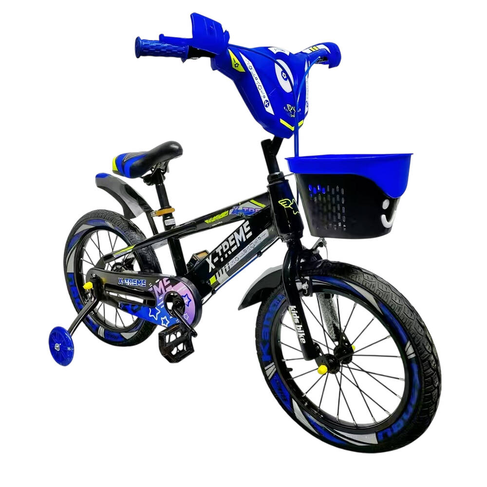 Опис Дитячий велосипед X-Treme KANGU  25.16-04 к16 сталь синій Дитячий велосипед   KANGU – зручна та красива новинка від X-Treme. Рама велосипеда виконана з якісної сталі, відрізняється стильним дизайном під кросовий мотоцикл та комфортом в експлуатації. Колеса 16" розміру. Модель підходить для навчання та практики дітей їзді, тому, що оснащена додатковими маленькими знімними колесами. На цьому велосипеді дитина весело та безпечно зможе здійснювати свої перші поїздки.