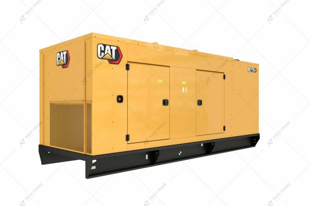 Дизельний генератор CAT DE715GC закритого типу. Максимальна потужність 572 кВт. Витрати палива при 100% навантаженні 142,2 л/год. Об'єм паливного бака 910 л.