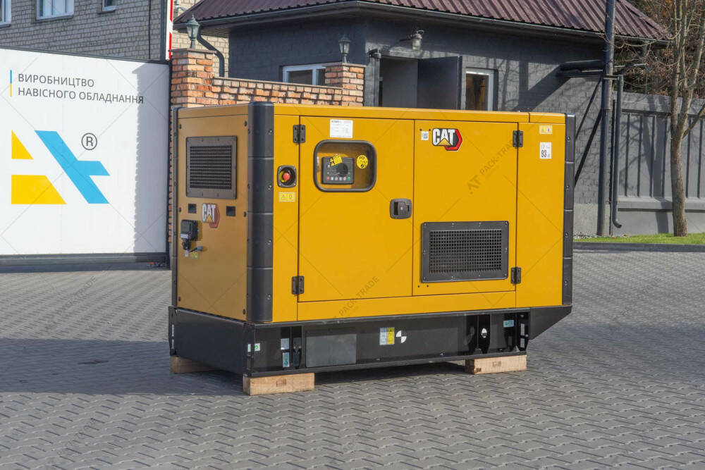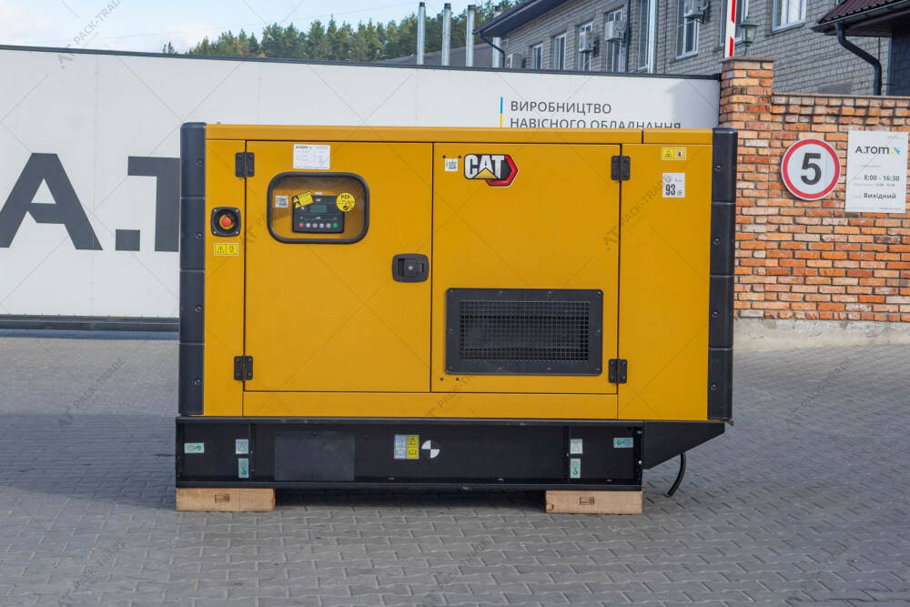 Дизельний генератор CAT DE88E0 70.4/64 кВт. Максимальна потужність – 70.4 кВт. Витрати палива при 100% навантаженні – 18 л/год. Об'єм паливного баку – 219 л.