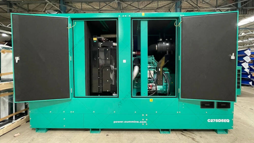 Дизельний генератор Cummins C275D5EQ 220/200 кВт закритого типу. Максимальна потужність – 220 кВт. Об'єм паливного баку – 995 л.