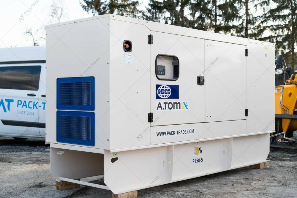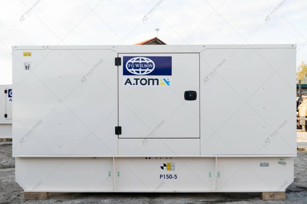 Дизельний генератор FG Wilson P150-5 закритого типу. Потужність 120 кВт. Напруга 110-480 В. Об'єм паливного баку 327 л. Витрати палива при 100% навантаженні 29,9 л.