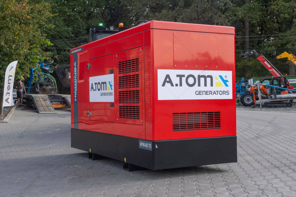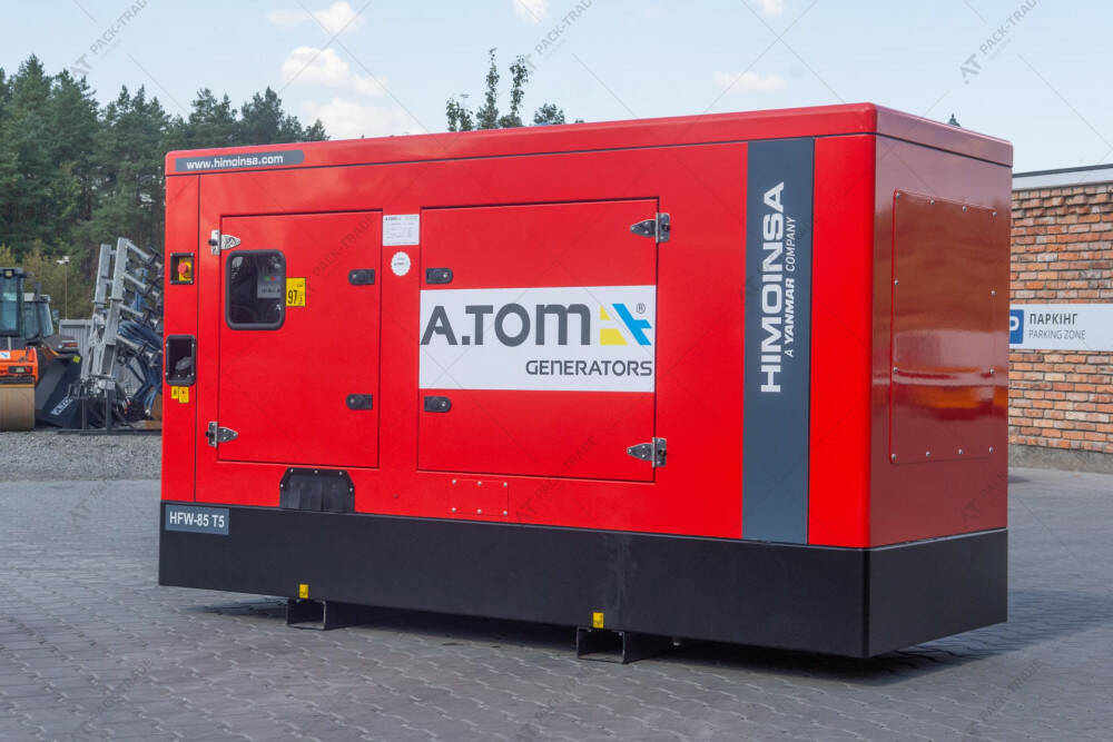 Дизельний генератор HIMOINSA HFW-85 T5 73/68 кВт. Максимальна потужність – 73 кВт. Витрати палива при 100% навантаженні – 19,02 л/год. Об'єм паливного бака – 240 л.