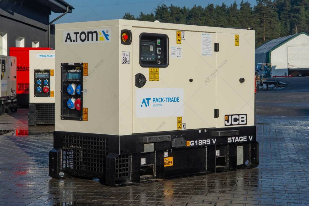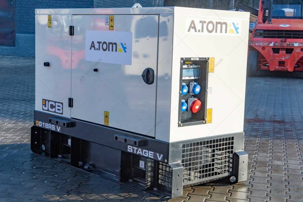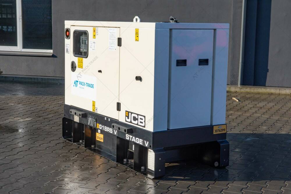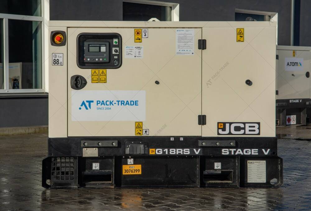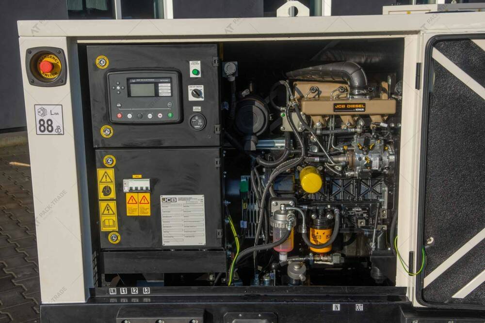 Дизельний генератор JCB G18RS 16 кВт. Максимальна потужність 16 кВт. Витрати палива при 100% навантаженні 4,45 л/год. Об'єм паливного баку 100 л