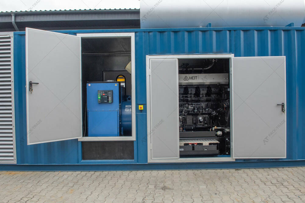 Дизельний генератор KOHLER SDMO T-1650 1320 кВт закритого типу. Максимальна потужність 1320 кВт. Витрата палива при 100% навантаженні 320 л/год. Система контролю рівня мастила в двигуні.