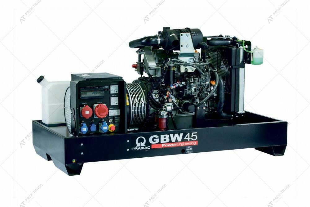 Дизельний генератор PRAMAC GBW45Y 36,26 кВт. Максимальна потужність 36,26 кВт. Витрати палива при 100% навантаженні 10,91 л/год. Об'єм паливного баку 51 л.