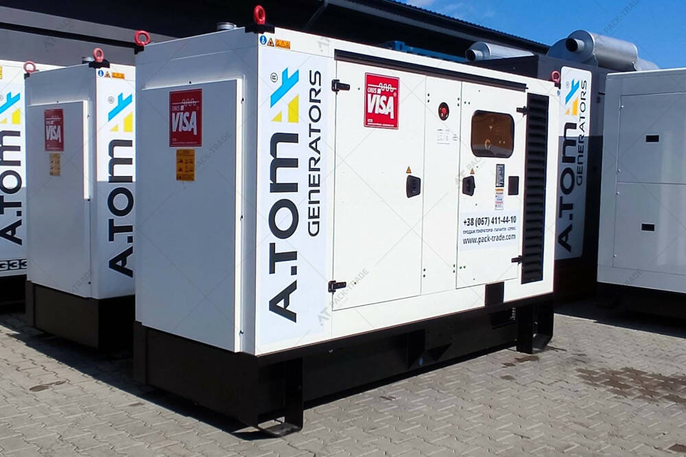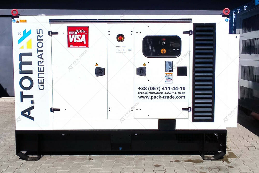 Дизельний генератор VISA D250GX 220/200 кВт. Максимальна потужність – 220 кВт. Витрати палива при 100% навантаженні – 54.4 л/год. Об'єм паливного бака – 360 л.