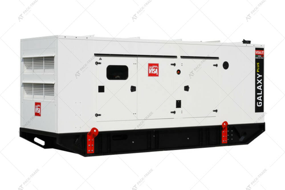 Дизельний генератор VISA DS800GXP 720/640 кВт. Максимальна потужність – 720 кВт. Витрати палива при 100% навантаженні – 168 л/год. Об'єм паливного бака – 400 л.