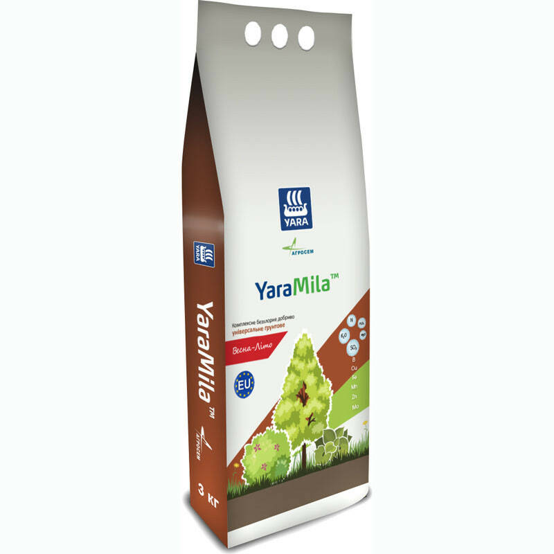 Добриво безхлорне універсальне грунтове Весна-Літо YaraMila - це комплексне безхлорне добриво з мікроелементами YaraMila це ідеальний інструмент у збільшенні урожайності овочів, садів, ягід, декоративних та хвойних насаджень у весняний та літній періоди перед посадкою / посівом, також при підживленні під час росту. При використанні добрива YaraMila у весняний період у рослин підвищується імунітет – вони будуть швидше проростати, краще переносити весняний холод, будуть стійкішими до хвороб та шкідників. Під час цвітіння та плодоношення Ваші рослини будуть забезпеченні елементами живлення з добрива YaraMila. А це – рясне цвітіння, високий урожай продукції, відмінні смакові якості та вміст вітамінів.