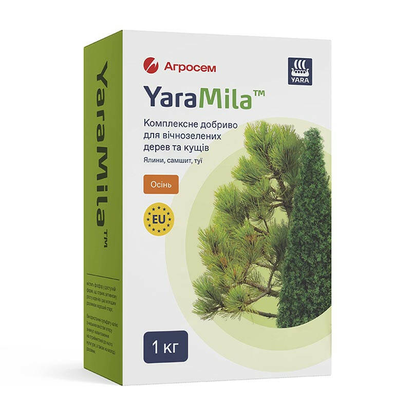 Добриво для вічнозелених дерев, кущів Осінь YaraMila – це унікальний засіб з високим вмістом фосфору, калію і мікроелементів для найкращого забезпечення потреби декоративних листових рослин у період підготовки до зими. Воно спеціально розроблене для забезпечення рослин цими елементами живлення на тривалий термін.