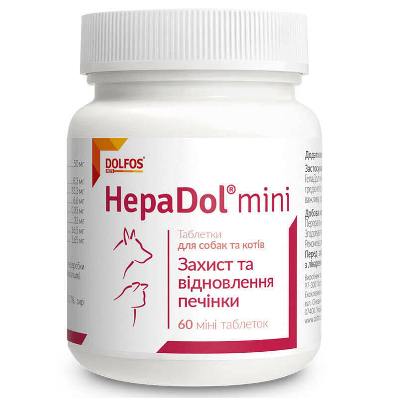 Dolfos (Дольфос) HepaDol Гепадол - Таблетки для захисту й регенерації печінки для собак і котів, 60табл