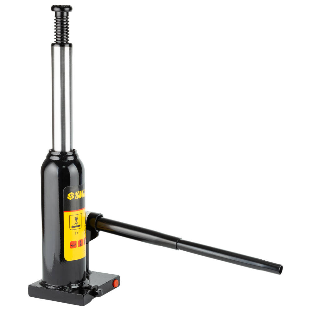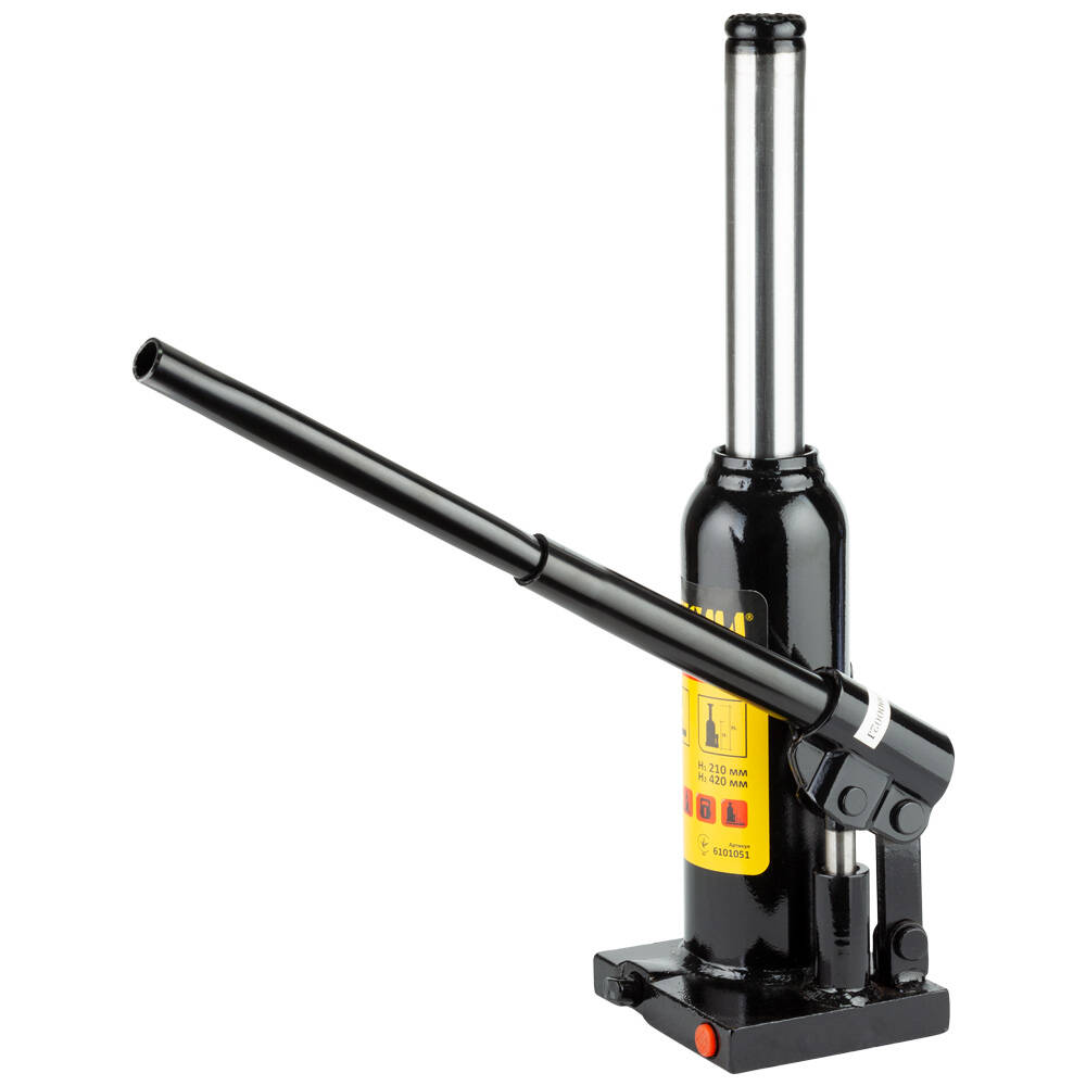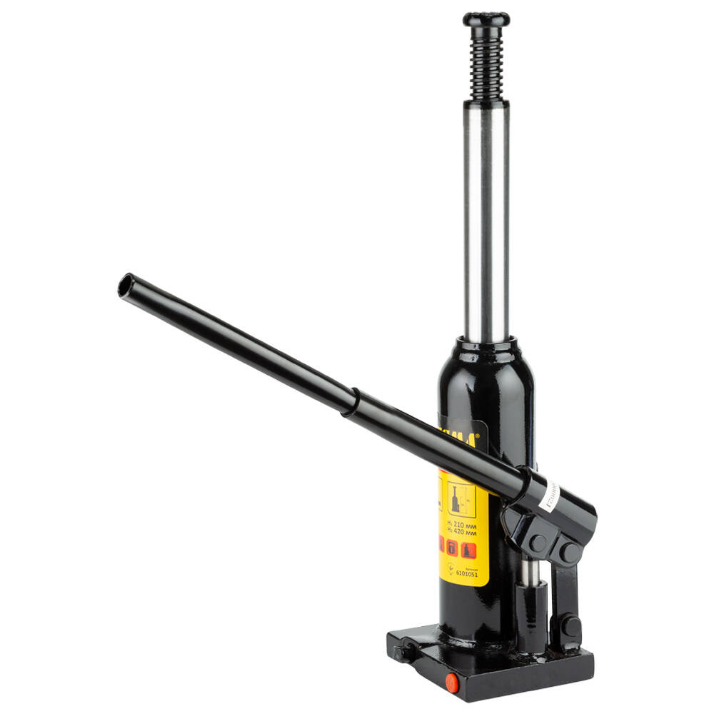 Домкрат гідравлічний пляшковий 5т H 210-420мм SIGMA (6101051) відрізняє простота конструкції і зручність експлуатації, що розширює область його застосування і дозволяє ефективно виконувати роботи будь-якої складності. Його активно використовують для монтажу і демонтажу в будь-якій галузі (машинобудування, будівництво і т. д.), Він придатний для ремонту автомобілів, колісних пар залізничних вагонів, а також в якості силового вузла пресів, трубогибов, труборізів і іншого подібного інструменту.