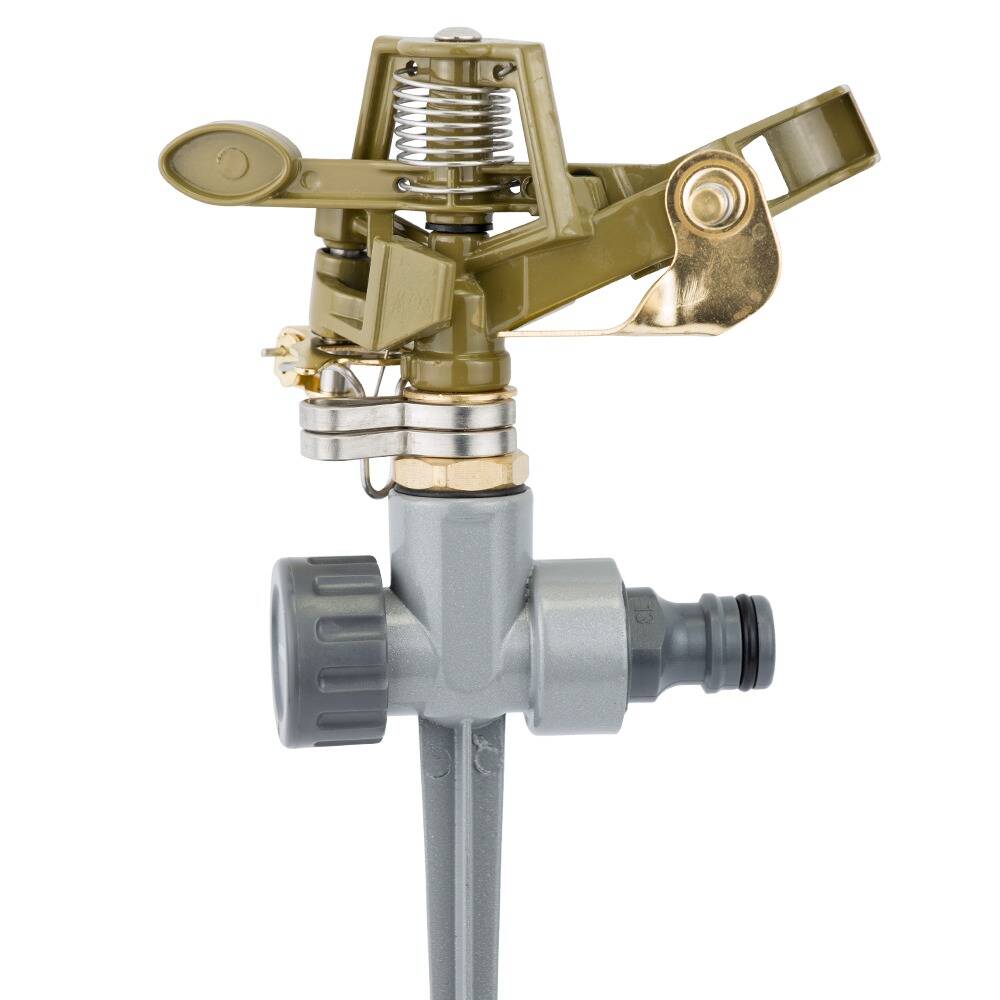 Дощувач імпульсний на металевому кілочку (BRASS+ZINC) FLORA (5013224) призначений для секторно-кругового поливу присадибних ділянок, городів, клумб, газонів і т.д.