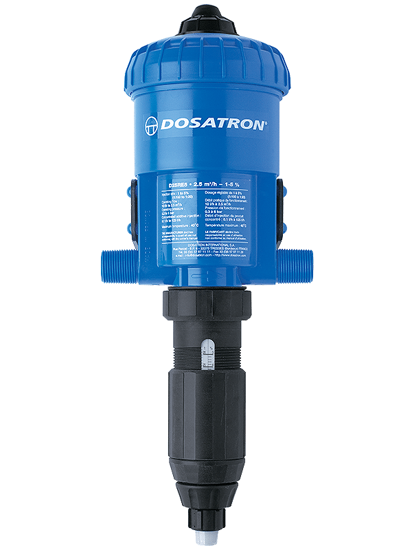 Підключений до мережі води Dosatron використовує тиск води в якості єдиної рушійної сили. Приводиться в дію таким чином: він всмоктує концентрований продукт, дозує з бажаним процентним вмістом, а потім перемішує з рушійною водою. Отриманий розчин прямує вниз по мережі. Доза продукту, що впорскується завжди пропорційна обсягу води, що проходить через Dosatron, незалежно від коливань витрати або тиску в мережі.