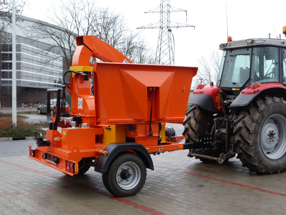 Дробарка подрібнює деревину діаметром до 250 мм. Для ефективнішого використання машини рекомендується завантажувати деревину механічним способом, наприклад, за допомогою маніпулятора.