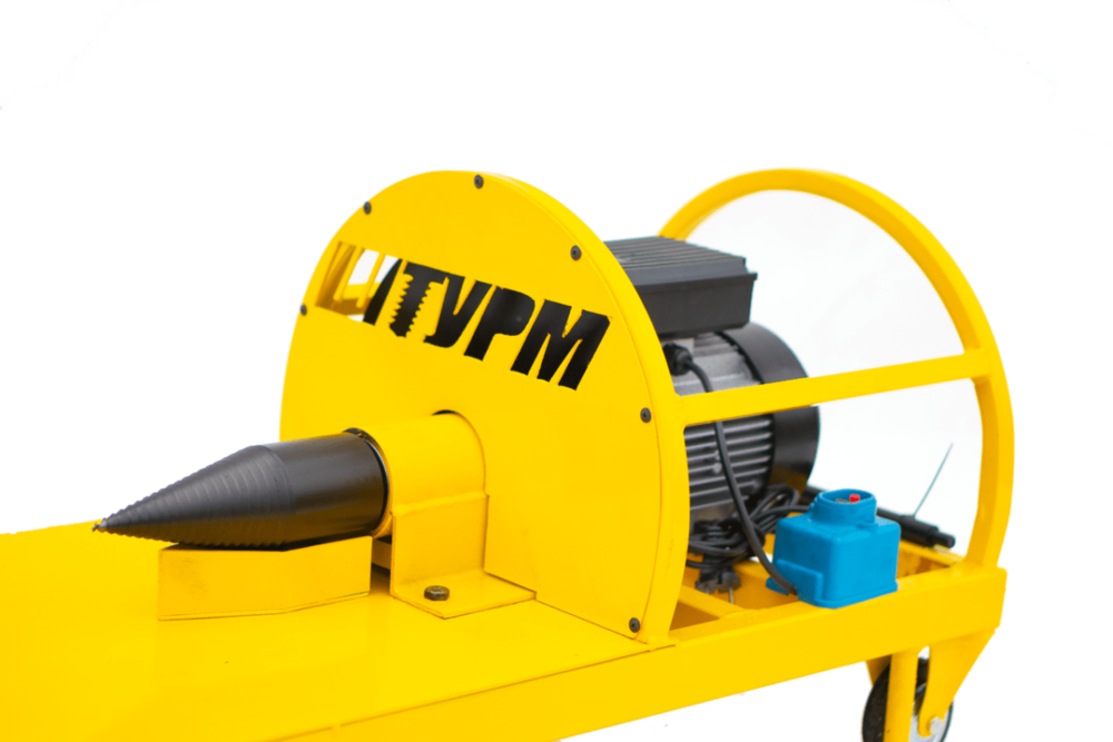 Подача поленьев происходит очень просто. Для этого достаточно положить их на небольшую станину. После того как чурбан подводится к конусу, все происходит автоматически. На него нанесена структура, которая способствует проникновению модуля внутрь дерева, чем происходит расслоение на части. Никаких разлетающихся щепок или слетающих топорищ. Все безопасно и с задачей сможет справиться даже ребенок. Мотор также защищен от механических повреждений специальными усиливающими дугами.