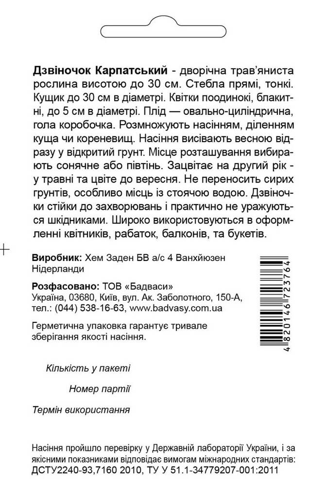 Дзвіночок Карпатський, 0,1 г, Садиба Центр