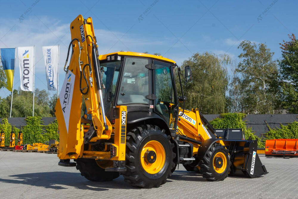 Екскаватор-навантажувач б/в JCB 3CX , 2023р/в. Напрацювання – 361 м/год. Двигун – 81 кВт. Кондиціонер,. Серводжойстики. Гума – GoodYear, зад. 18.4-26 R, пер. 12.5/80-18. TorqueLock. Монітор нового зразка. Пневматично-електричне сидіння з регулюванням та підігрівом. LED додаткове робоче освітлення. Плаваючий режим переднього ковша. Вила на передньому ковші. Задня телескопічна стріла. Гідравлічне зміщення задньої стріли. Система замків гідроциліндрів задньої стріли (HUSKO). Задній швидкоз’єм. Гідролінія на задній стрілі.