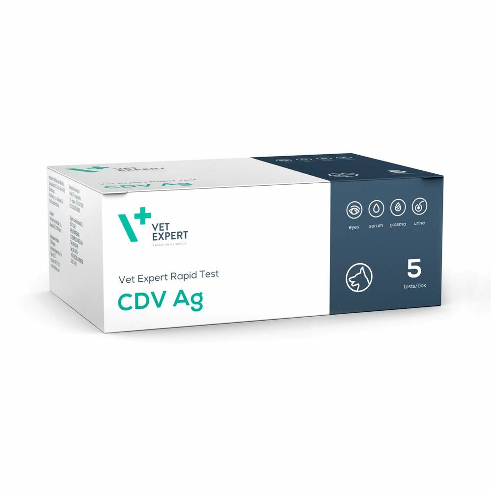 VetExpert CDV Ag — тест, заснований на імунохроматографічному методі (ІХ), який використовується для якісного виявлення антигену вірусу чуми м'ясоїдних (Canine Distemper virus) у кон'юнктивальних або носових виділеннях, слині, сечі, сироватці або плазмі.