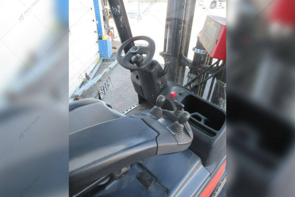 Електричний навантажувач LINDE E12-02, 2019 р., з напрацюванням 6757 м/год. Тип щогли Triplex. Вантажопідйомність 1200 кг. Висота підйому 5,22 м. Загальна висота навантажувача 2,3 м. Шини пер. 18х7-8 гусм., зад. 15х4 ½-8 гусм. Вила — 1,15 м. Напівкабіна, робоче освітлення.