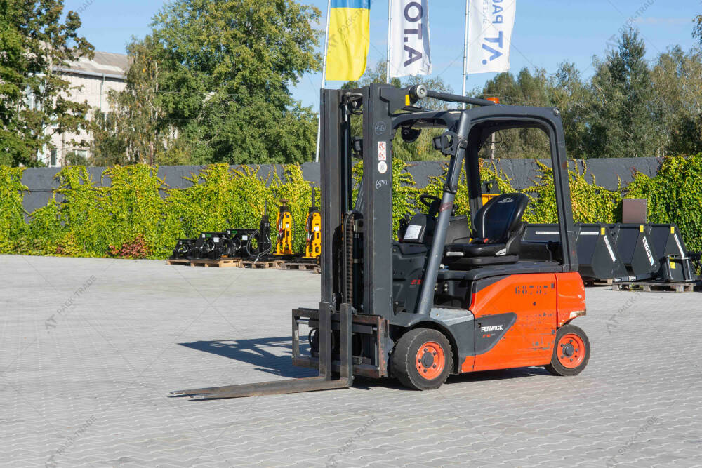 Електричний навантажувач б/в Linde E16P-02, 2017 р/в, з напрацюванням 4296 м/год. Тип щогли Triplex. Вантажопідйомність 1600 кг. Висота підйому 4,47 м. Загальна висота навантажувача 2,1 м. Шини передні: 180/70-8 гусм., задні: 150/75-8 гусм. Вила — 1,2 м. Функція бокового зміщення каретки. Напівкабіна, робоче освітлення.