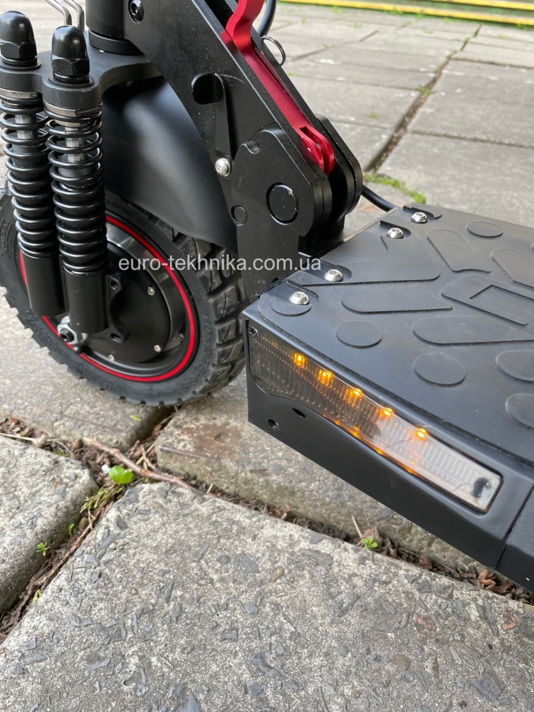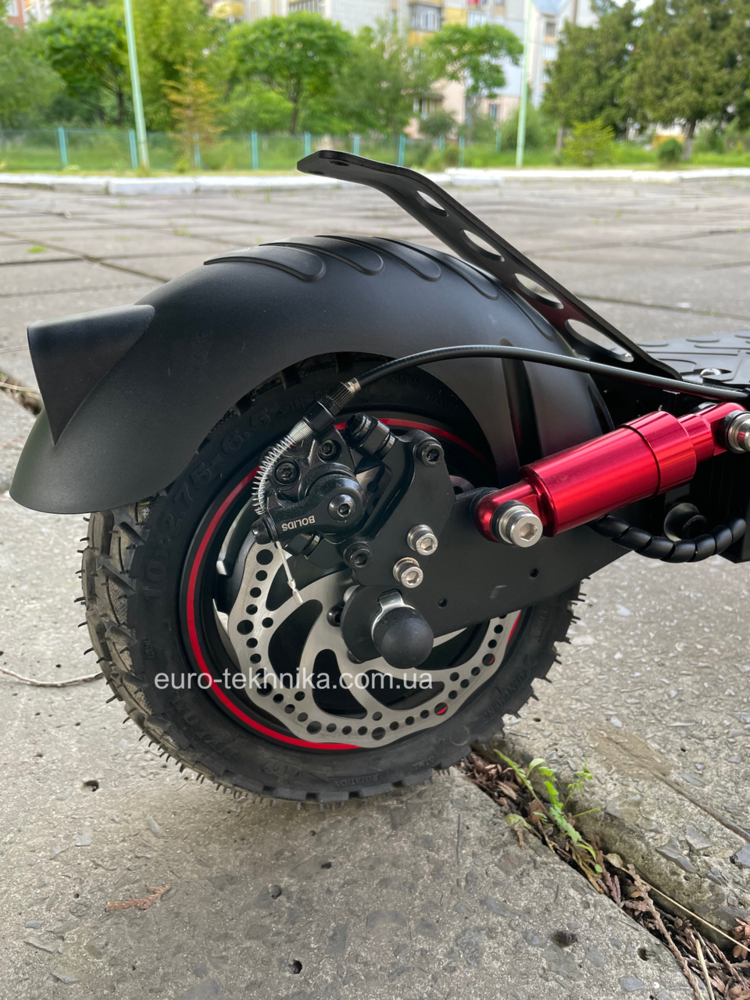 - Дискова гальмівна система, що дозволяє швидко зупинити самокат