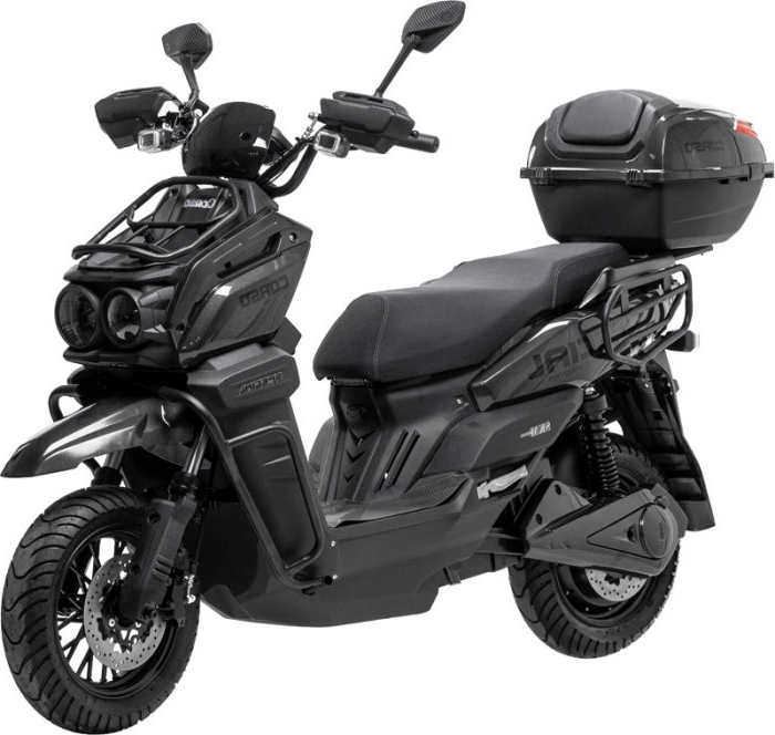 Дуже крутий електроскутер! Є захист рук, бічні захисти, кофр, дискові гальма, м'яка підвіска, великі колеса.