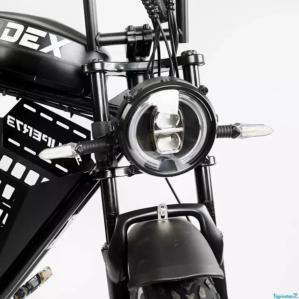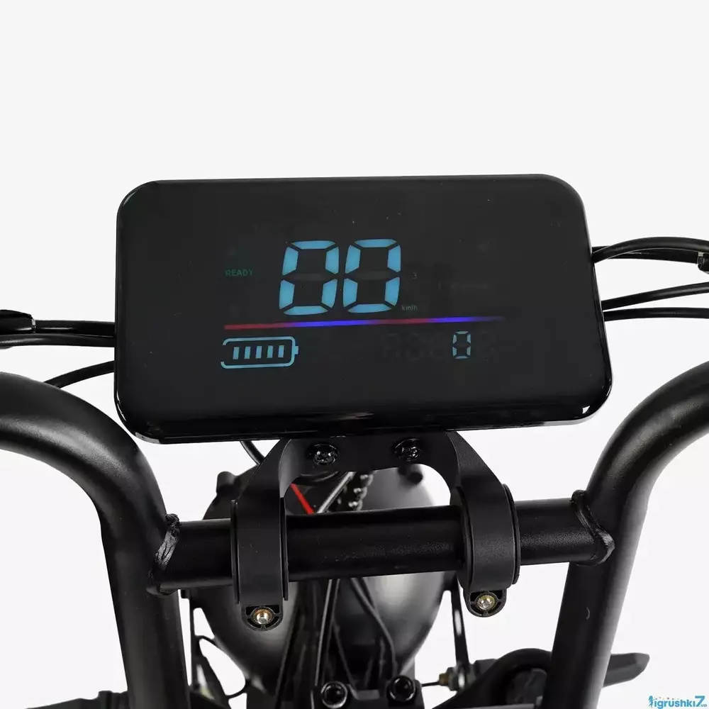Рама стальна Максимальна швидкість до 50 км/год Дистанція пробігу до 45 км. Висота по сидінню 80см Середній час повного заряджання від 6 до 8 годин.