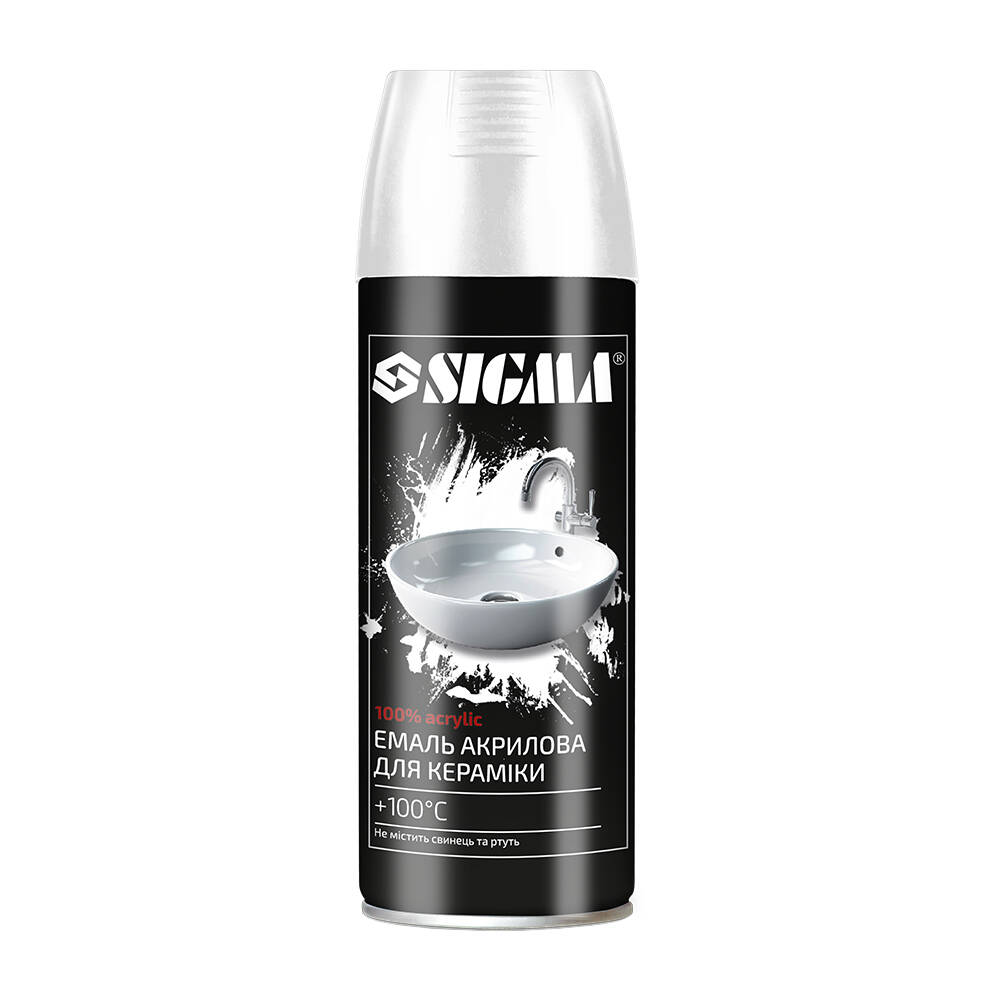 Емаль аерозольна акрилова термостійка для кераміки +100°C 400мл білий глянець SIGMA (2736421)