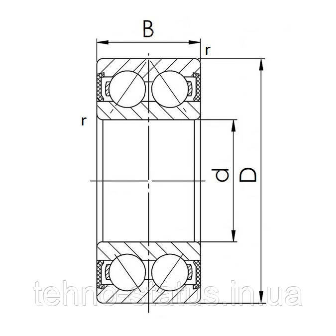d = 20 мм, D = 52 мм, B = 22 мм