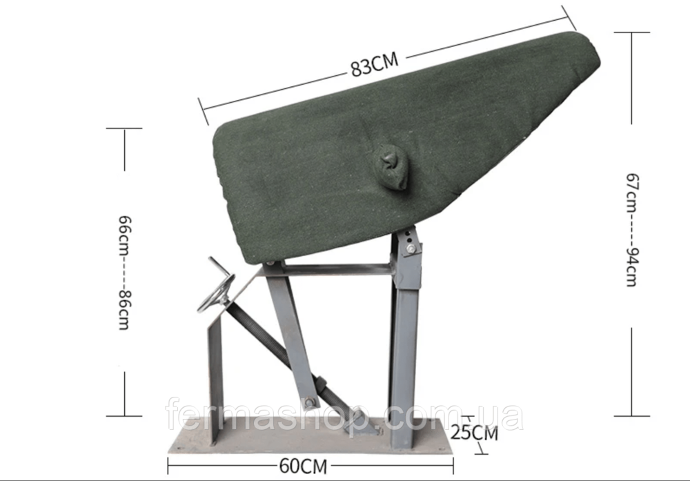 Високоякісний фантом свиноматки – це незамінний інструмент для сучасних свиноводських господарств, що спеціалізується на штучному осі. Наш фантом виготовлений із прочих матеріалів, що забезпечує довговічність і стабільність у використанні. Характеристики: Розміри: Длина 83 см, висота регулюється від 66 см до 94 см, ширина основи 60 см, товщина металу 5 мм. Матеріали: Прочна сталева конструкція, покриття порошковою краской для захисту від корозії. Комфорт: Оббивка фантома виконана з м'якого, але стійкого до розміру матеріалу, що імітує обробіток свиноматки для оптимальної стимуляції хряка. Стабільність: Надійна підставка з антискользящим покриттям гарантує стійкість під час використання. Регулювання: Висота легко регулюється за допомогою зручного механізму, що дозволяє налаштувати фантом під різні породи і розміри хряків. Вес 25 кг Переимущества для Вашей ферми: Повышение эффективности сбора спермы. Забезпечення безпеки для тварин і персоналу. Можливість точного контролю процесу збору сперми. Цей фантом стане в допомогу для забезпечення ефективного і гуманного процесу збору сперми, сприяючи покращенню репродуктивного здоров'я тварин і якості генетичного матеріалу.