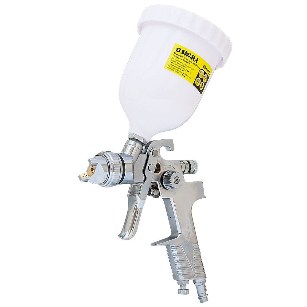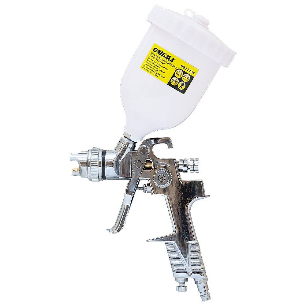 Професійний Фарборозпилювач Ø1.3мм (хром) з в/б (пласт) SIGMA (6812131) системи HVLP (великий обсяг, низький тиск) з верхньою подачею фарби. Дуже добре підходить для застосування в автомалярних майстерень, СТО, в меблевому виробництві, в будівництві і в інших галузях.