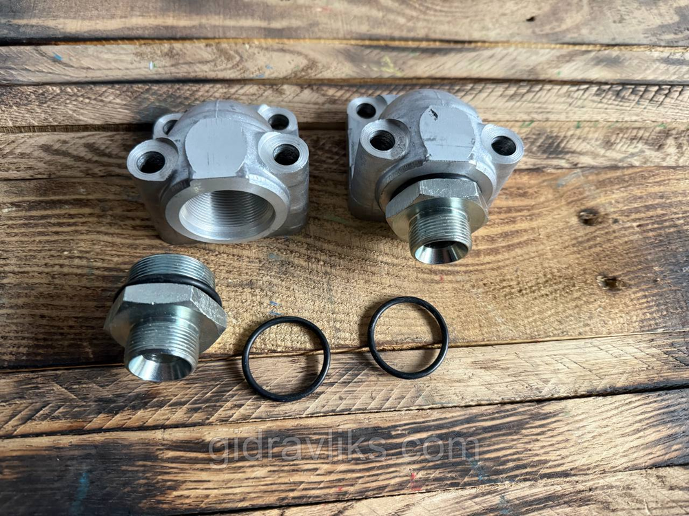 Фланець НШ-50 + штуцер М27×1.5 + гумові кільця (комплект) — готовий набір для підключення гідравлічного насоса НШ-50 до гідролінії. Забезпечує герметичне та надійне з'єднання, стійке до тиску та вібрацій.