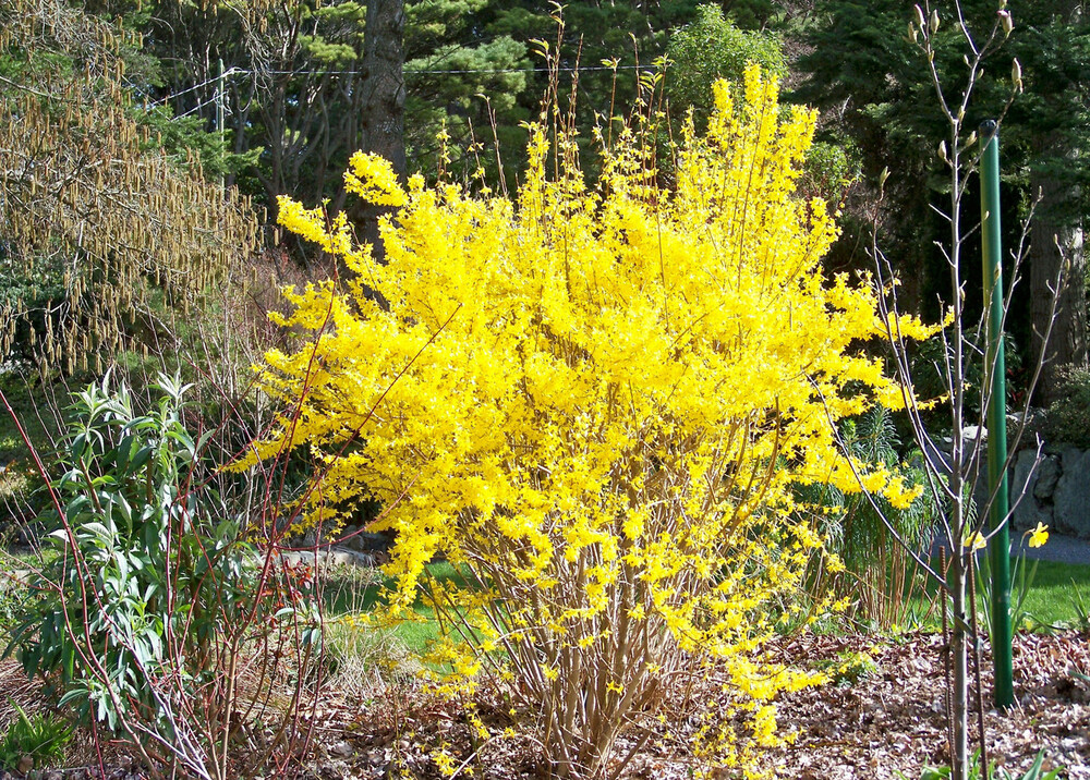 Форзиція середня Голден Таймс. Форзиция промежуточная Голден Таймс. Forsythia intermedia Golden Times