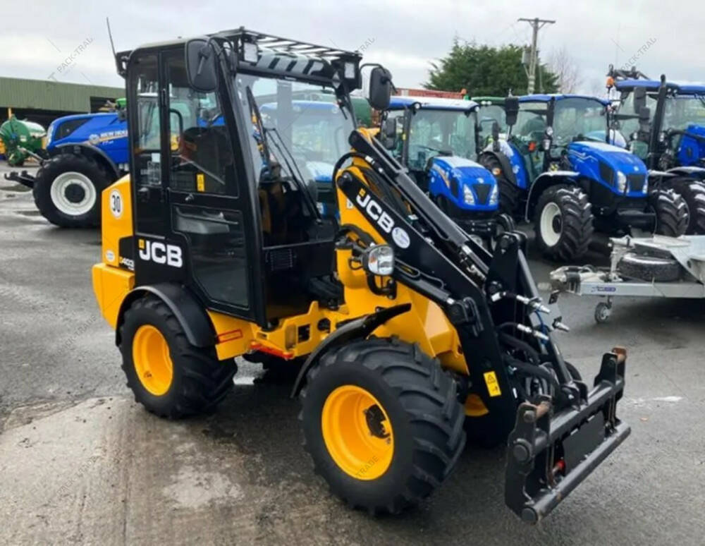 Фронтальний міні навантажувач JCB 403 Plus 2021 р/в, з напрацюванням 148 м/год. В комплекті: ківш та вила. Серводжойстик, автомагнітола, робоче світлодіодне світло, додаткові гідравлічні виходи, гідравлічний швидкоз'єм. Система Quickhitch. Максимальна швидкість – 30 км/год. Гума 31*15.5-15. Додаткове робоче переднє та заднє світлодіодне світло. Додатковий захист даху кабіни.