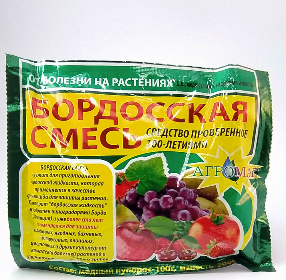 Бордосская смесь - используется для профилактики и лечения плодовых, овощных, ягодных, бахчевых, цитрусовых, цветочных и других культур от комплекса болезней растений и уничтожения паразитных грибов.