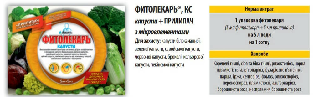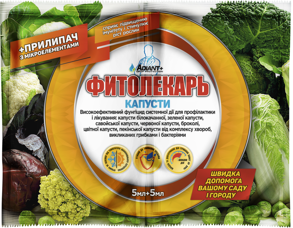 Фунгицид Фитолекарь 5 мл + Прилипатель 5 мл для капусты Adiant+
