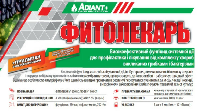 Фитолекарь + Прилипатель с микроэлементами - Высокоэффективный фунгицид системного действия для профилактики и лечения от комплекса болезней вызванных грибками и бактериями.